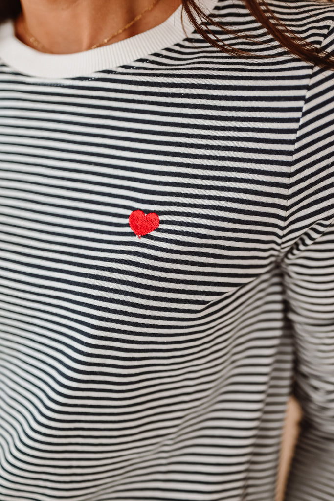 - Geborduurd rood hartje op de borst